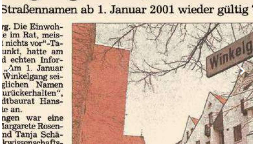 Die Abraham-Gasse wurde nicht, wie man vielleicht vermuten könnte, nach dem biblischen Propheten Abraham benannt. Die Herkunft dieses Namens ist recht interessant: Er taucht erstmals im Jahr 1626 in einem Dokument auf, in dem ein Mann namens Abraham Arondeus an diesem Ort wohnt. Historiker gehen davon aus, dass die Gasse nach ihm benannt wurde. Direkte dokumentarische Beweise für eine jüdische Herkunft oder einen jüdischen Glauben von Arondeus wurden jedoch nicht gefunden. Doch der Nachname und die Form des Vornamens klangen „jüdisch“, was eine Rolle spielte. Im Jahr 1942 benannten die Nationalsozialisten den Namen wegen seines „jüdischen Klangs“ von „Abraham“ in „Winkelgang“ um. Dies war Teil der nationalsozialistischen Kampagne zur „Säuberung“ städtischer Ortsnamen von „jüdischen“ Namen, die auf einem Erlass des Reichsinnenministeriums aus dem Jahr 1938 beruhte. Dieser Erlass schrieb die Umbenennung von Straßen mit „jüdischen” Namen vor.