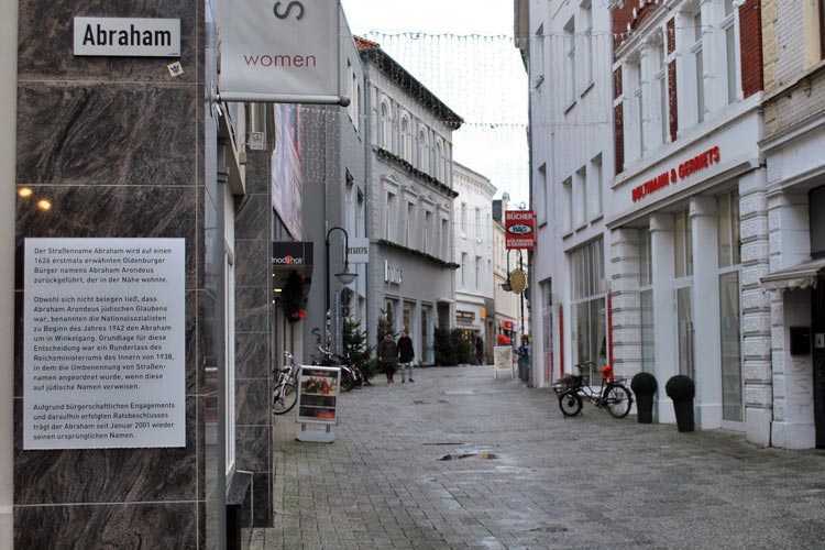 Mitten im Zentrum von Oldenburg, zwischen Gaststraße und Wallstraße, befindet sich eine schmale Gasse. Sie trägt den ungewöhnlichen Namen „Abraham“. Wie historische Dokumente belegen, wurde sie bereits im 17. Jahrhundert so benannt. Über 300 Jahre lang blieb es dabei, bis die Nationalsozialisten sie in „Winkelgang“ umbenannten.